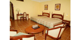 Hotel Todo Incluido Tres Estrellas que goza de una posición privilegiada en la playa de Guardalavaca, cerca de Bariay en la provincia de Holguín. El entorno natural que rodea estas instalaciones se caracteriza por una hermosa playa de arenas blancas y una exuberante vegetación, ideal paras los amantes de la naturaleza y quienes deseen combinar la historia, tradición de la zona y atractivos naturales. Recomendado para familias, solteros y parejas; así como para la celebración de bodas, luna de miel, eventos y practica del buceo. Precios por habitación / todo incluidoCapacidad Máxima: 2 adultos + 2 niños CONDICIONES GENERALES PARA LA RESERVA DE HOTELES