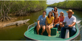 Une expérience d'une journée complète qui combine culture, histoire et nature au centre de Cuba. Au départ des cayos, vous voyagerez jusqu'à la ville de Morón pour visiter un musée-hacienda sucrière historique, profiter d'une dégustation de boissons cubaines traditionnelles, déjeuner de plats créoles à la campagne, observer les crocodiles dans une ferme locale et faire une balade en bateau à moteur à travers des lagunes naturelles et des canaux de mangroves pour découvrir la flore et la faune locales. Détails Clés Jour garanti : Lundi Prise en charge : Transfert depuis les hôtels en bus climatisé (Cayo Paredón, Cayo Guillermo ou Cayo Coco) Heure de départ : 08h30 Heure de retour approximative : 17h30 Minimum / Maximum : minimum 2 participants Langues : Espagnol et anglais (autres langues sur demande et selon disponibilité) Bébés : Les enfants de moins de 1,99 an voyagent gratuitement Inclus Transport aller-retour en bus climatisé Guide spécialisé Entrée au musée-hacienda sucrière Dégustation d'une boisson cubaine traditionnelle (à base d’aguardiente) Déjeuner créole à la campagne (une boisson incluse) Visite d'une ferme de crocodiles Balade en bateau à moteur à travers lagunes et mangroves Points Forts de l’Itinéraire Transfert depuis les hôtels de Cayo Paredón / Guillermo / Coco Visite du musée-hacienda sucrière de Morón et introduction au patrimoine sucrier cubain Dégustation de boissons traditionnelles Déjeuner créole dans un cadre champêtre Visite de la ferme de crocodiles (observation de l’espèce et de son habitat) Balade en bateau sur une lagune naturelle pour observer mangroves et faune locale Retour aux hôtels Informations Utiles Porter des vêtements légers et confortables, un chapeau/casquette, des lunettes de soleil et de la crème solaire ; prévoir au moins une bouteille d’eau. L’ordre des activités peut varier selon la météo, les besoins opérationnels ou la taille du groupe. Non recommandé aux personnes à mobilité réduite en raison du terrain irrégulier et de l’embarquement sur le bateau. Veuillez garder vos effets personnels en sécurité à tout moment ; l’opérateur n’est pas responsable des objets perdus ou laissés sans surveillance.